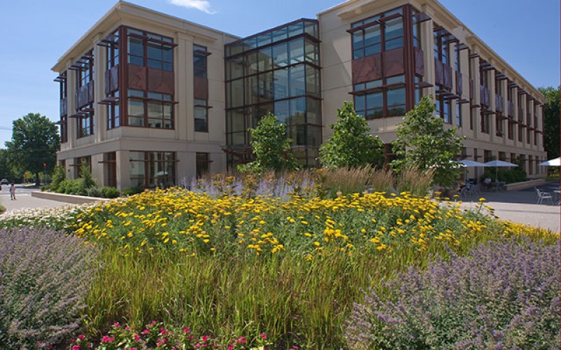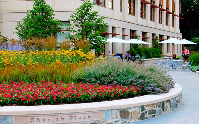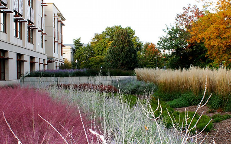 The School of International Service (SIS) at American University created an integrated site and multiuse building that work together to produce a more sustainable environment for the university. The site was previously an impervious parking lot, but now works to recycle and filter all stormwater on the site. This is accomplished by collecting water from the building roof in a cistern for recycling to use in the building toilets. Stormwater detained on the site is reduced and filtered through green roofs, bioretention, and vegetated buffers. The building has also earned a LEED® Gold rating. A variety of outdoor seating opportunities were included to help facilitate interactions between students, faculty, staff, and guests. Other sustainable features include xeriscape planting, edible plants, LED lighting, and no irrigation.