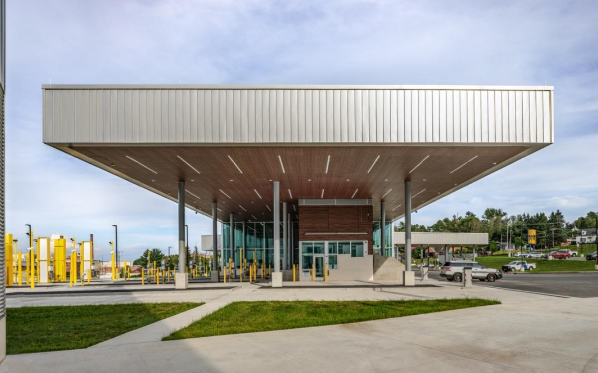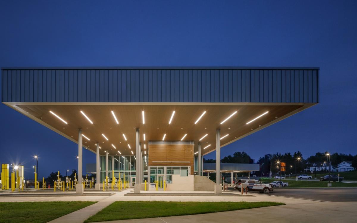 The new U.S. Madawaska Land Port of Entry (LPOE) is situated on a bluff in Madawaska, Maine, one of the four corners of the country and the northernmost town in New England. It’s an international border crossing that serves everything from commercial trucks to people on snowmobiles.
