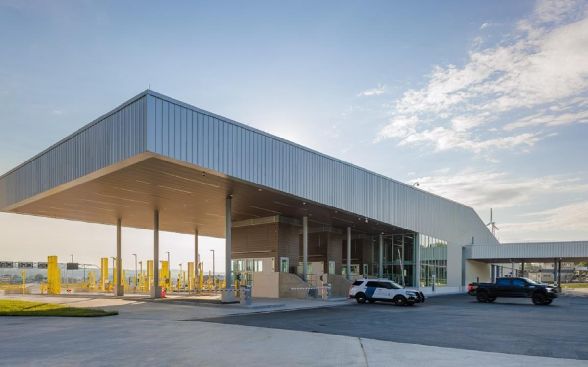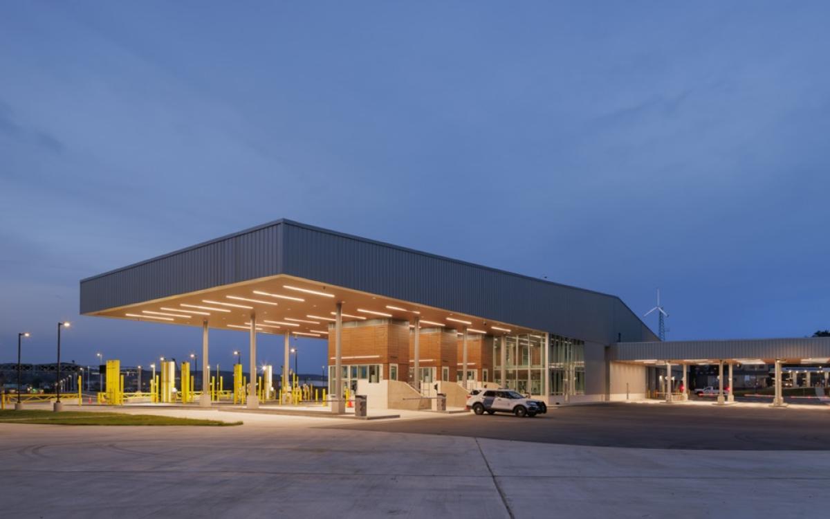 The new U.S. Madawaska Land Port of Entry (LPOE) is situated on a bluff in Madawaska, Maine, one of the four corners of the country and the northernmost town in New England. It’s an international border crossing that serves everything from commercial trucks to people on snowmobiles.